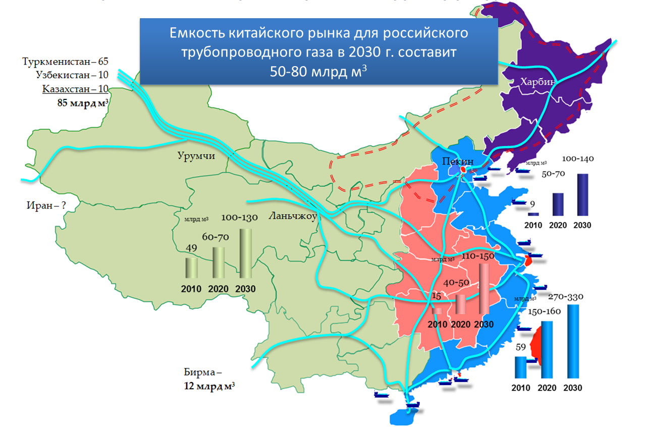 В предстоящие десятилетия страны Азиатско-Тихоокеанского региона будут представлять наиболее динамичный рынок потребления углеводородного сырья, при этом Китай будет являться определяющим игроком. Будет расти потребность в нефти для производства моторного топлива, и в газе для производства электроэнергии, а также для использования в качестве моторного топлива.
