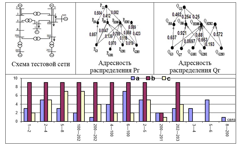 Для обеспечения требуемой вероятности итеративно последовательно решаются - задача вероятностного потокораспределения и задача определения допустимого режима на основе метода детерминированного эквивалента, в котором ищется допустимое решение со смещением математического ожидания критической переменной в допустимой области. Если решение существует, то с использованием метода адресности потокораспределения из множества возможных управлений выбирается вектор управления, содержащий минимальное число компонент, и определяется требуемое приращение вектора управления, обеспечивающее увеличение вероятности нахождения критической переменной в допустимой области.